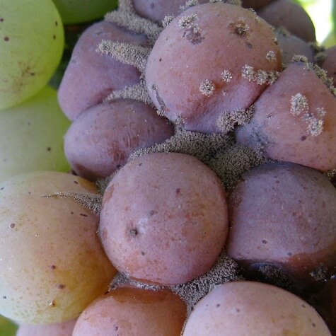 Keltertrauben wie beispielsweise Spätburgunder, Chardonnay oder Semillon sind dabei aufgrund ihres hohen Zuckergehalts meistens besonders anfällig für Botrytis. Zu den markantesten Symptomen eines Befalls mit Botrytis zählt ein gräulicher Pilzrasen. Aus diesem Grund wird Botrytis häufig auch Grauschimmel, Grauschimmelfäule oder Graufäule genannt.